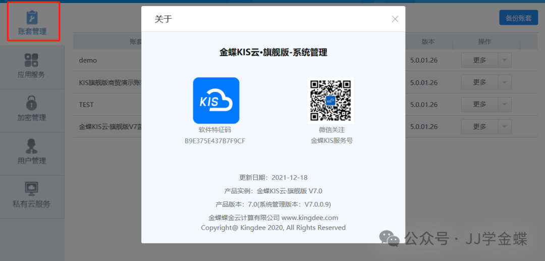 在V7.0中综合补丁对系统管理的功能做了优化,也支持与商贸版和专业版一样的账套管理功能,具体操作不在这里赘述,可以参考商贸版和专业版的账套备份操作。
