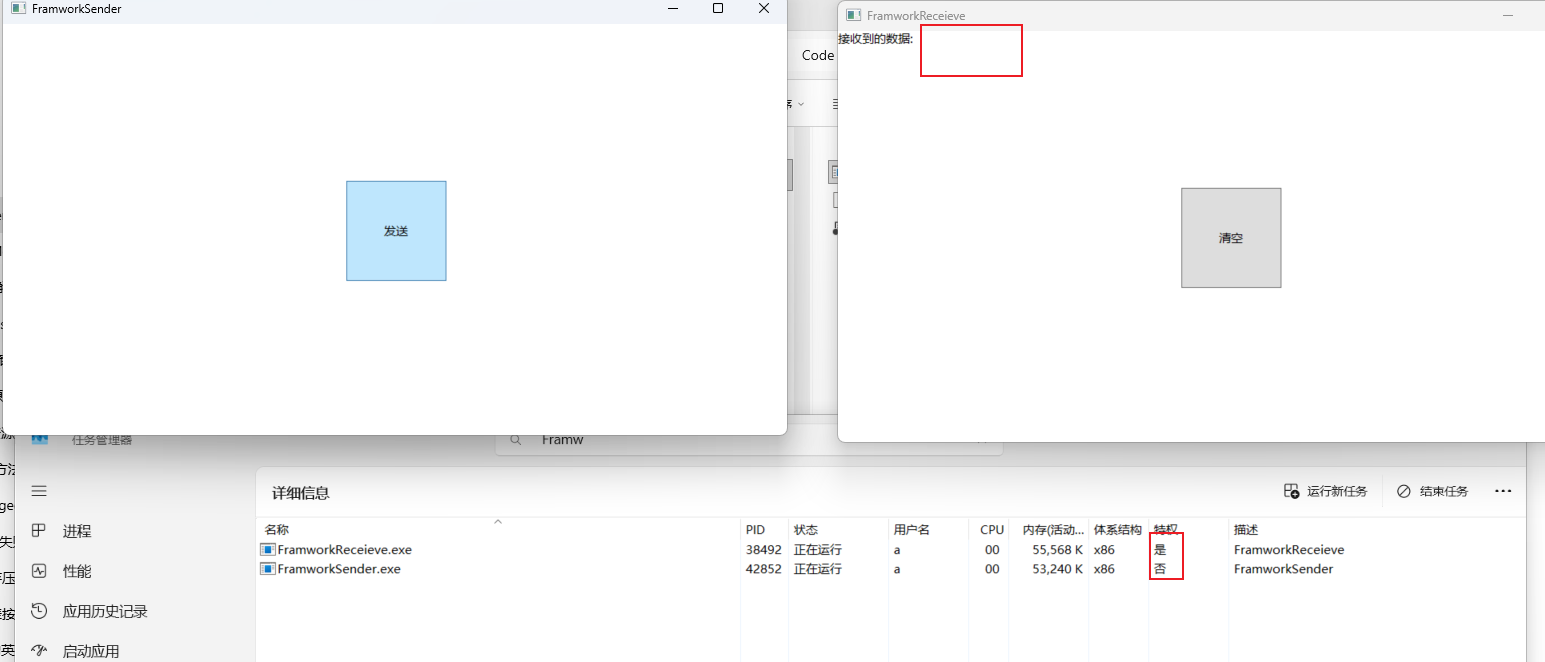 4、发送端是普通权限,接收端是 管理员权限,是接受不到数据